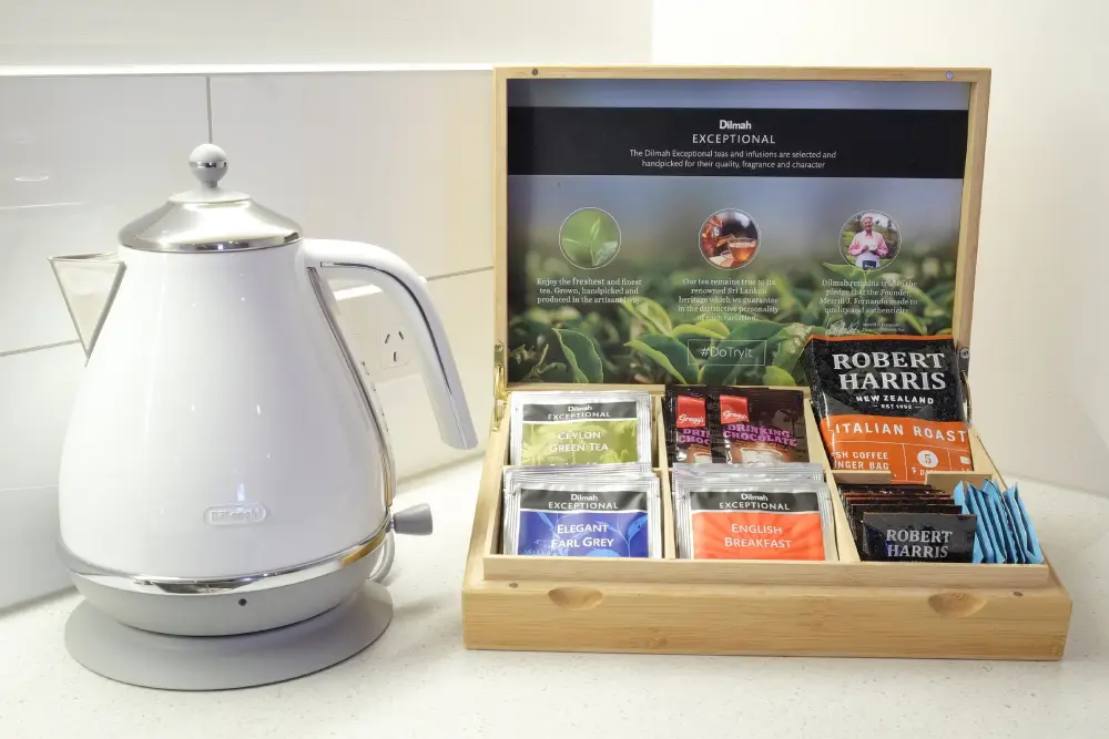 Self-contained twin studio with two single beds and full kitchenette — ideal for friends or colleagues travelling together.